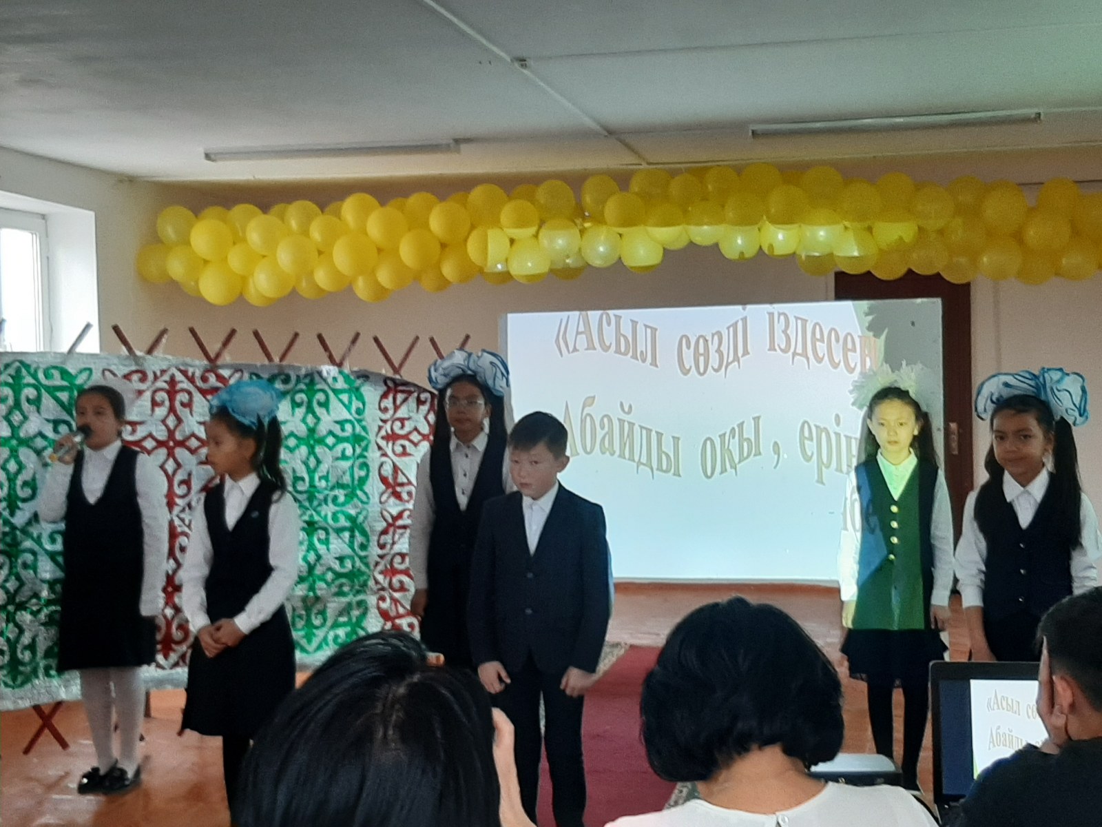 Мектебіміздің кітапхана меңгерушісі Т.Бисенғалиева «Сөз зергері - Абай Құнанбаев» атты кітап көрмесін ұйымдастырып, Абай атамыз туралы оқушыларға керекті қызықты да құнды мәліметтермен таныстырды. Әсіресе 5-7-сынып оқушыларының қызығушылықтары жоғары болды. Пән мұғалімдері Жанақбаева Мерует пен Төлегенова Жадыра бірлесе отырып, «Көркем сөз-көрікті ойдың жемісі» деген атпен Абай қарасөздерін жатқа мәнерлеп оқудан 5-10-сынып оқушылары арасында сайыс өткізіп, үздік деп танылған оқушылар апталықтың қорытынды кешіне жолдама алды.